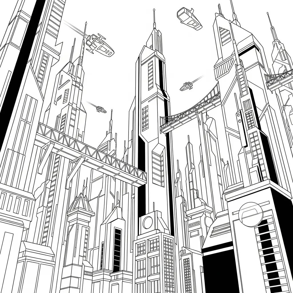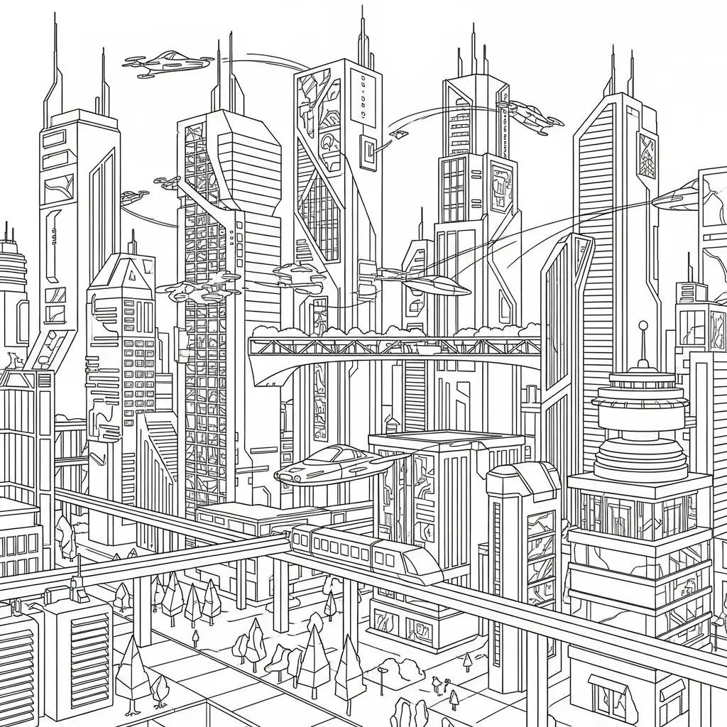Desenho de cidade futurista para colorir