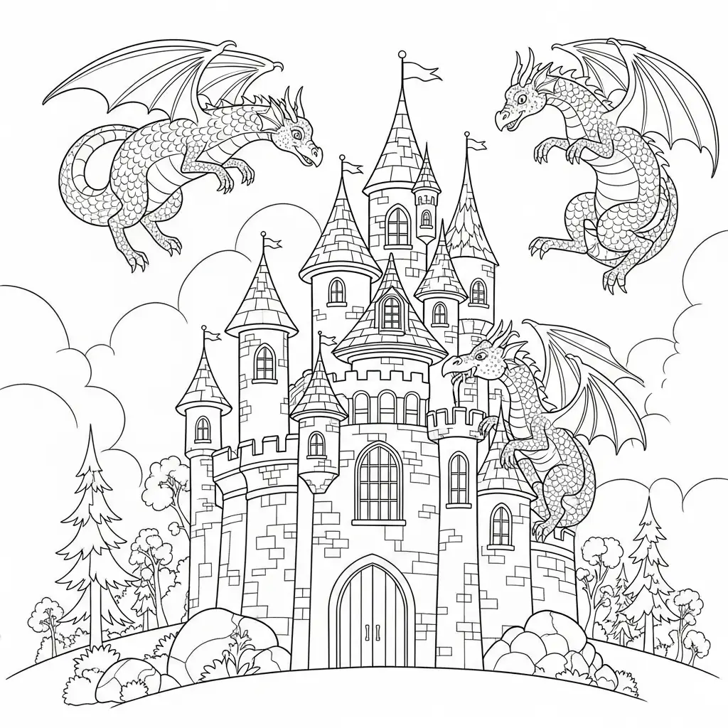 Desenho de Castelos de Conto de Fadas para colorir