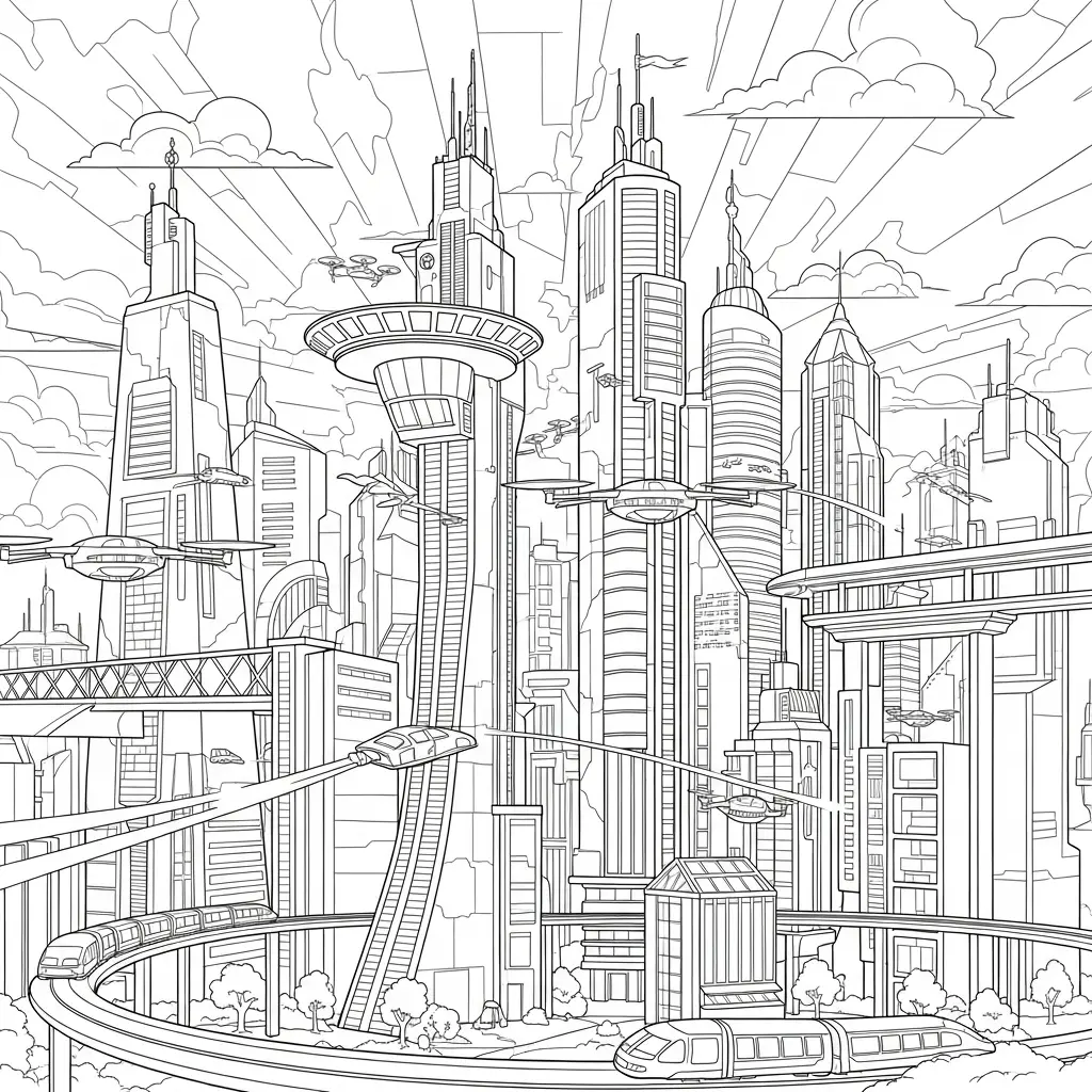 Desenho de Cidades Futuristas para colorir
