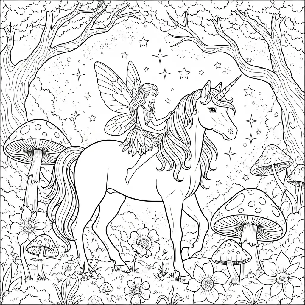 Desenho de Fadas e Unicórnios para colorir