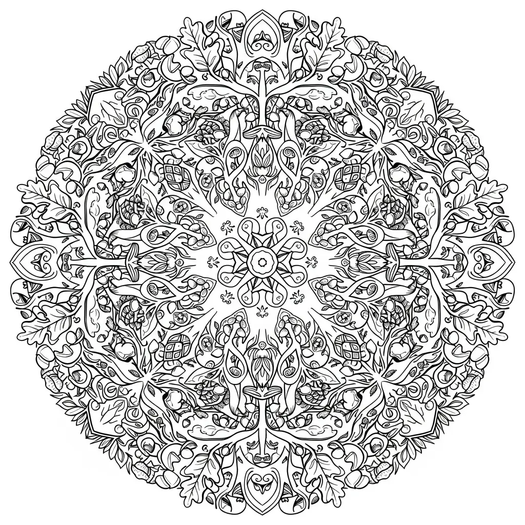 Desenho de Mandala Floresta para colorir