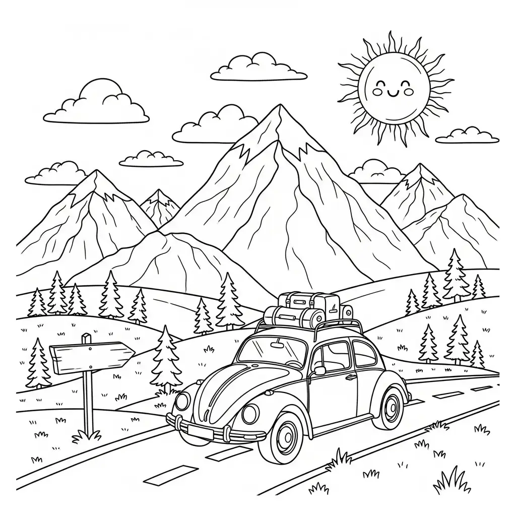 Desenho de Viagem por Estrada para colorir