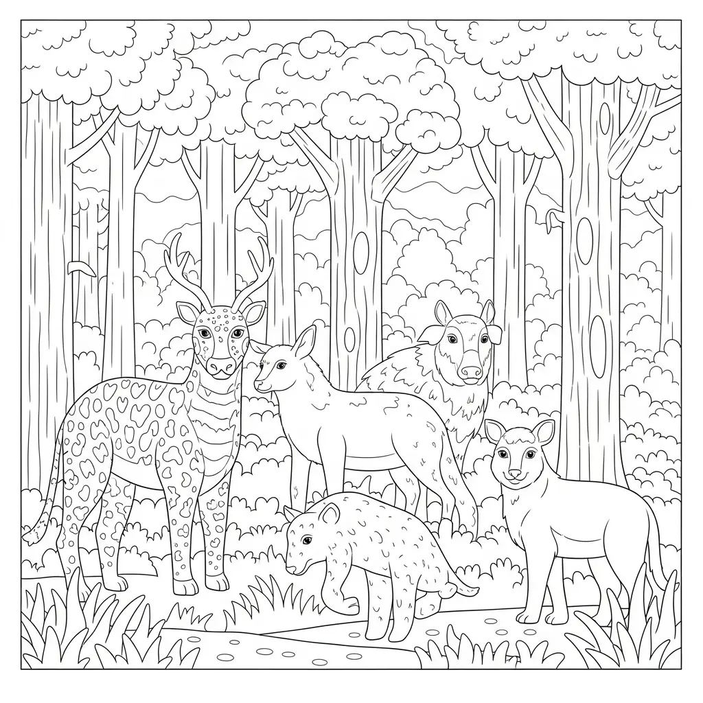 Desenho de animais da floresta para colorir