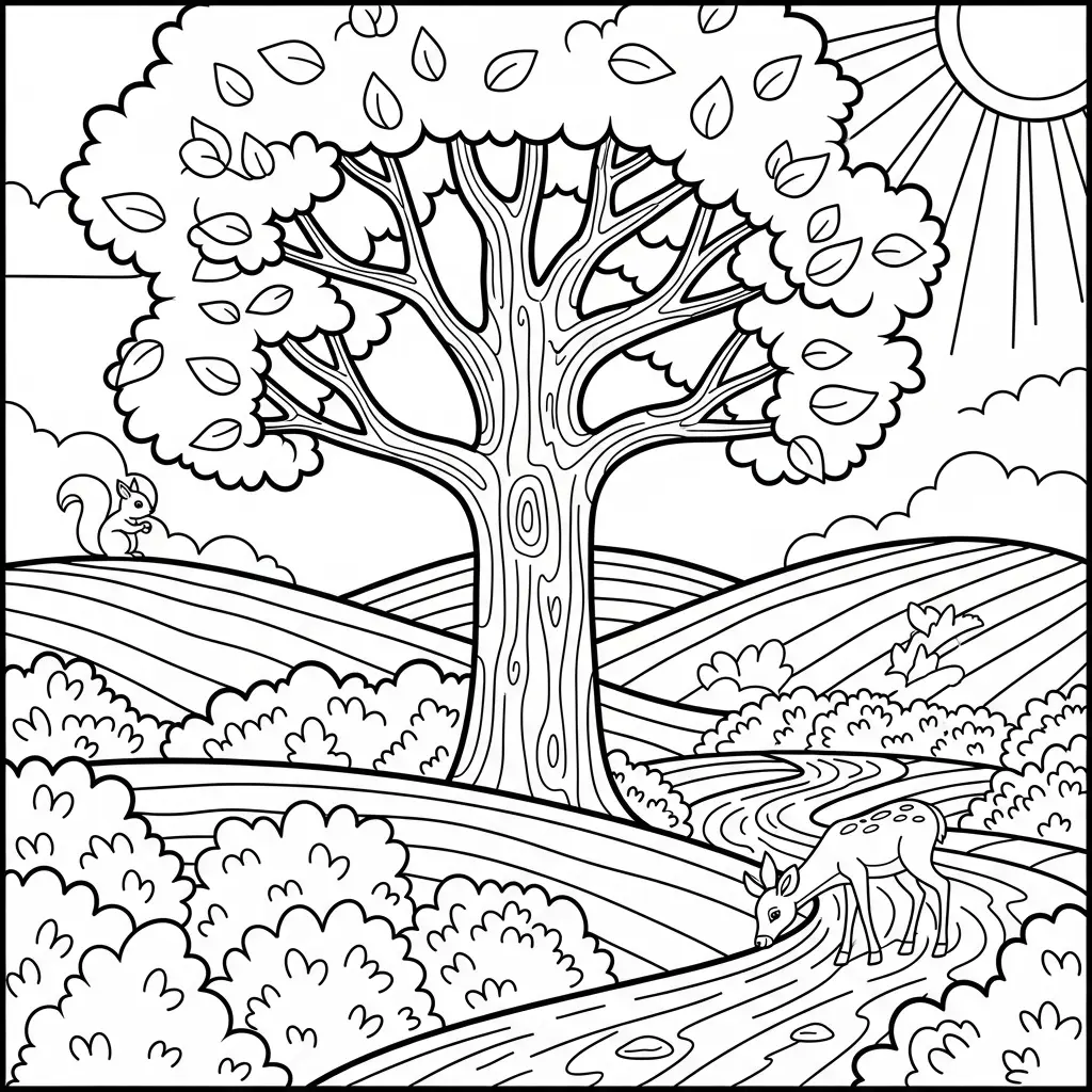 Desenho de árvores e natureza para colorir