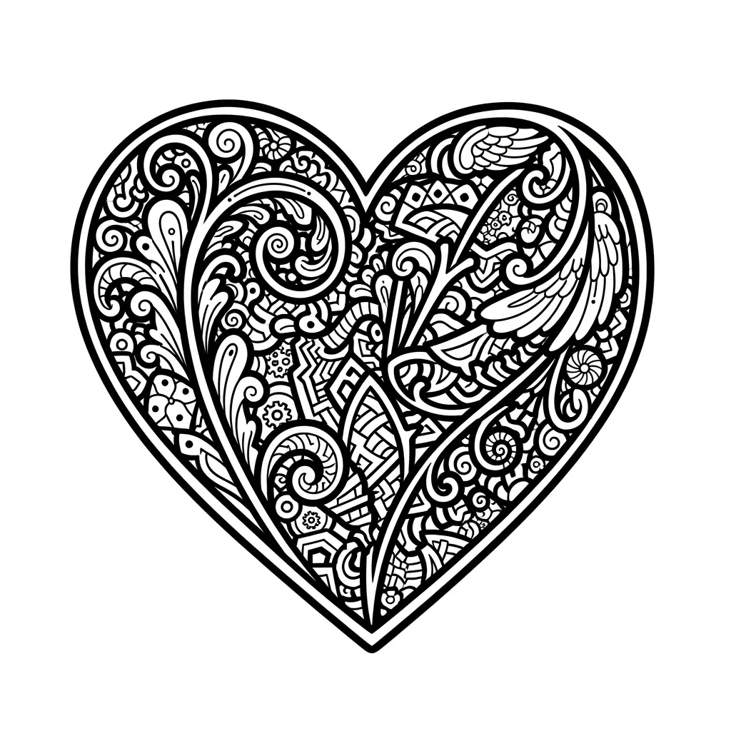 Desenho de coração com detalhes para colorir