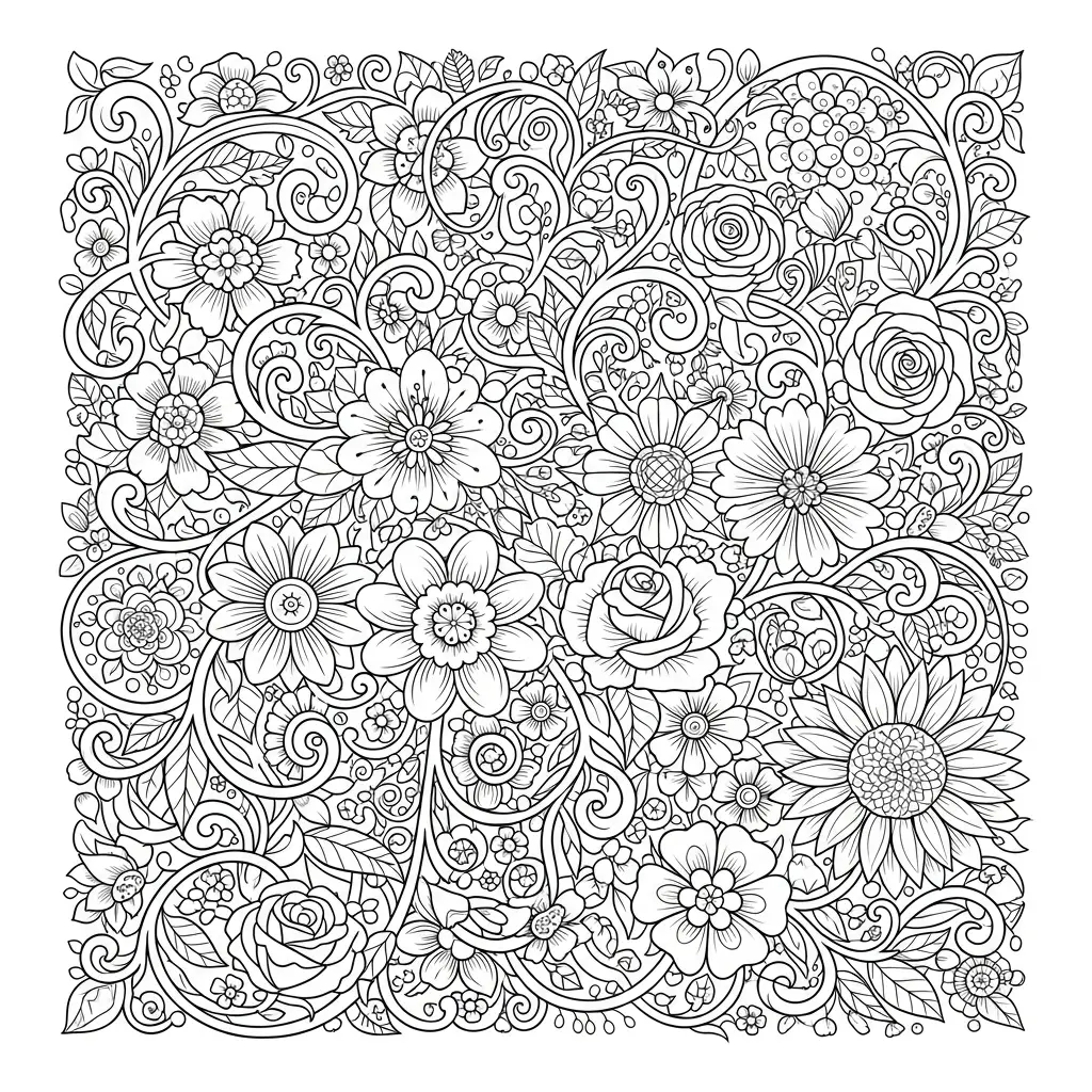 Desenho de flores intricadas para colorir