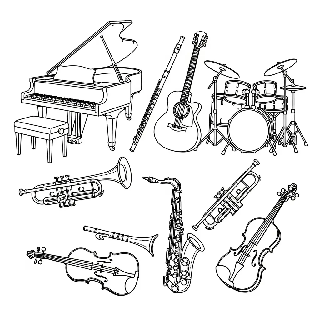 Desenho de instrumentos musicais para colorir