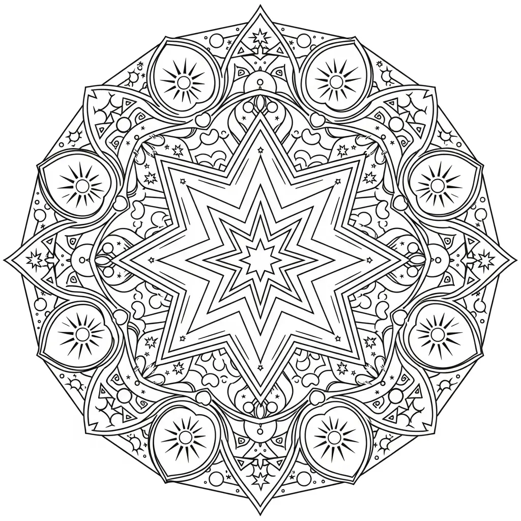 Desenho de mandala de estrelas para colorir