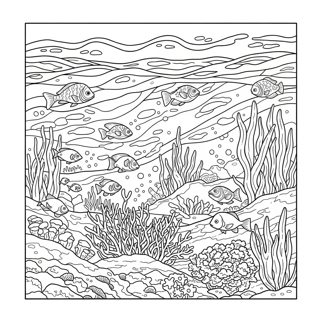 Desenho de oceano e criaturas marinhas para colorir