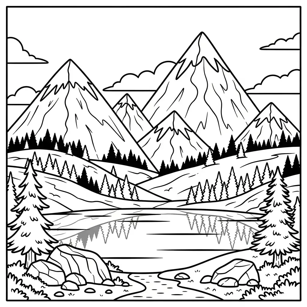 Desenho de paisagem montanhosa para colorir