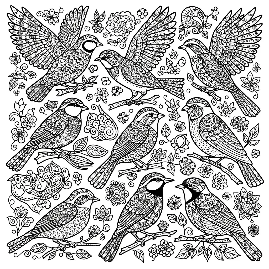 Desenho de pássaros em padrões para colorir