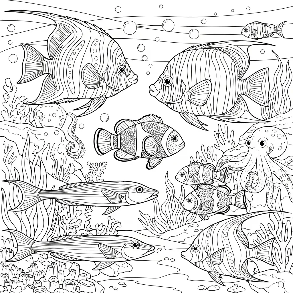 Desenho de peixes coloridos para colorir