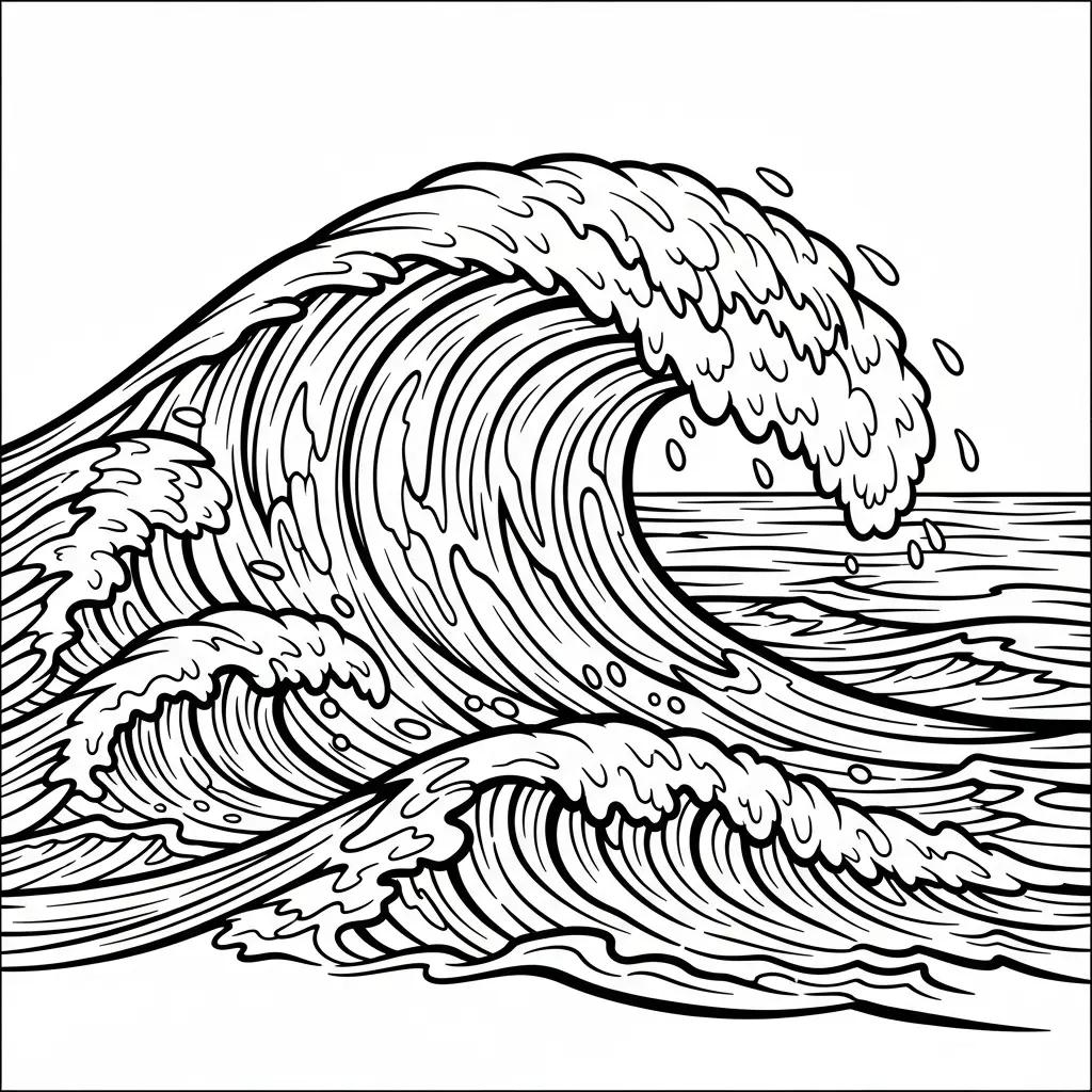 Desenho onda do mar para colorir