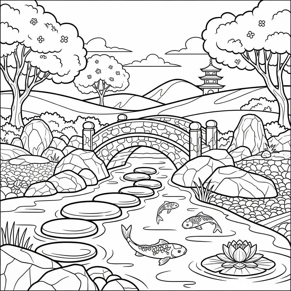 Desenho paisagem zen para colorir