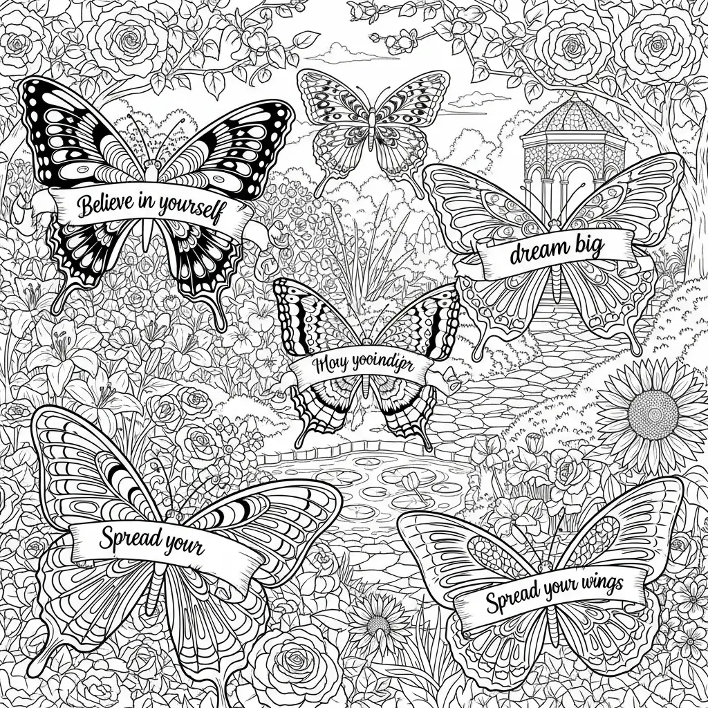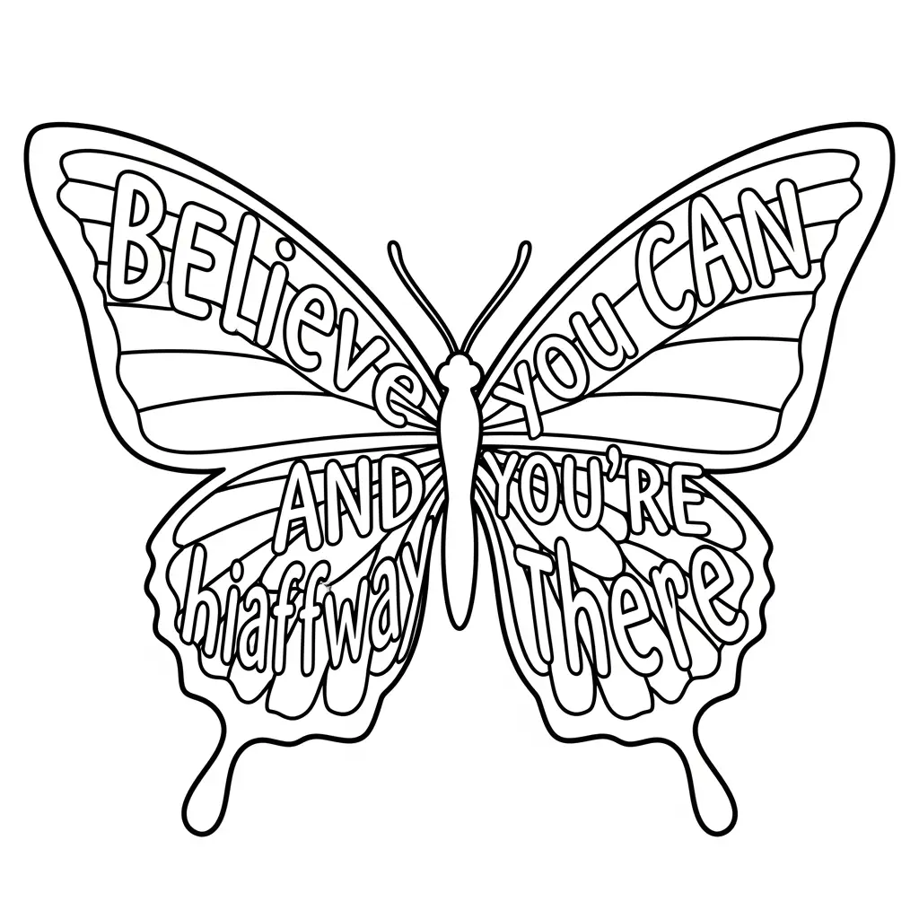 Desenho de Borboletas e Frases Inspiradoras para colorir