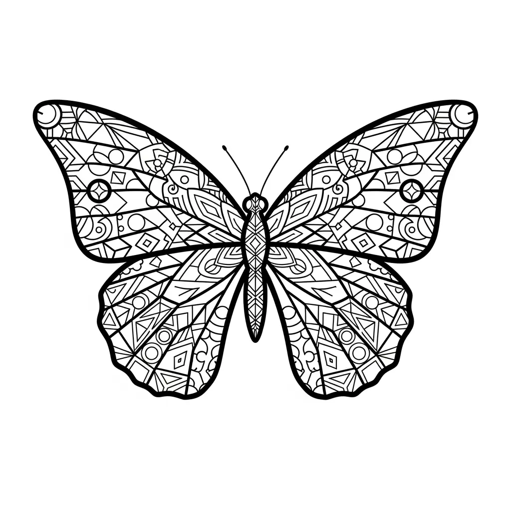 Desenho de Borboleta com Padrões Geométricos para colorir
