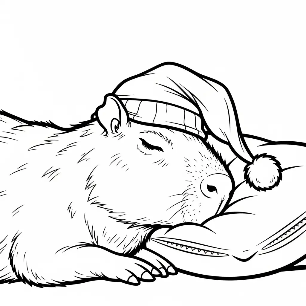 Desenho de Capivara dormindo com um travesseiro para colorir