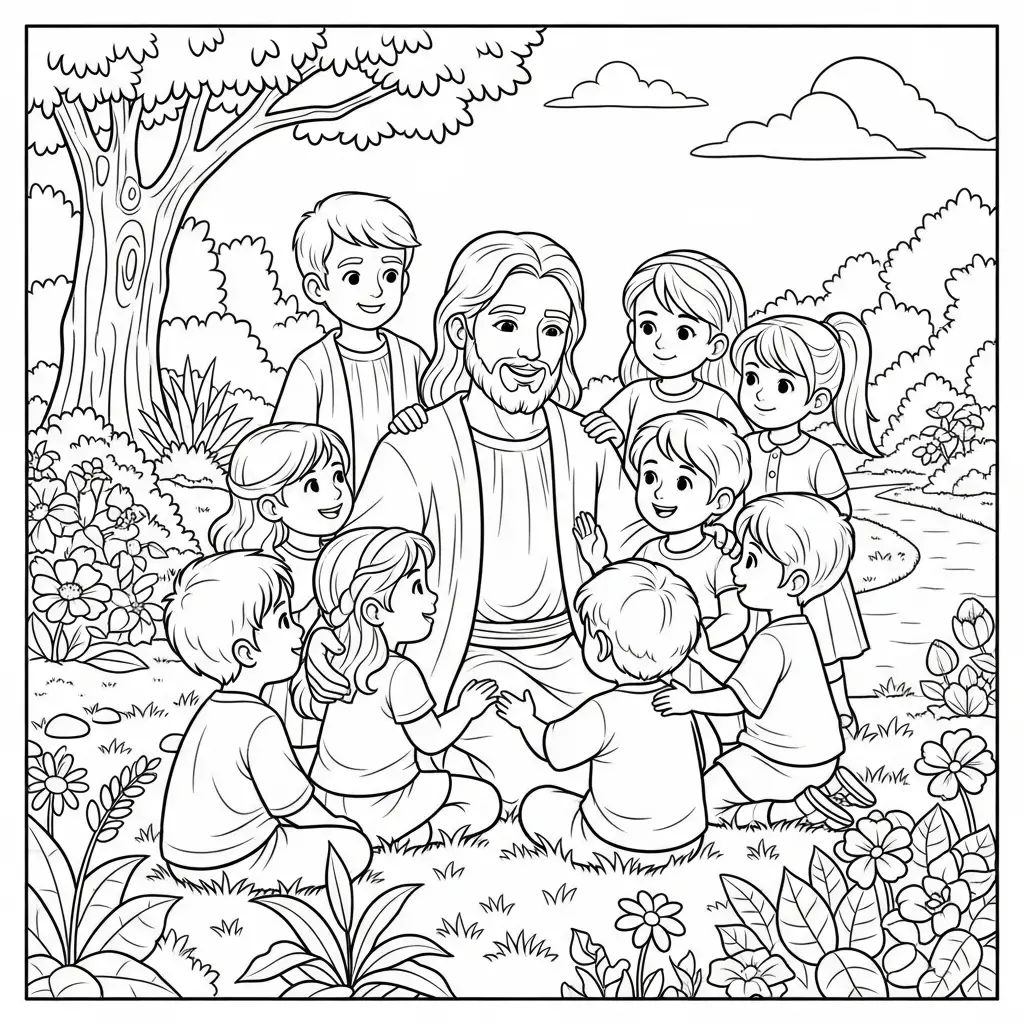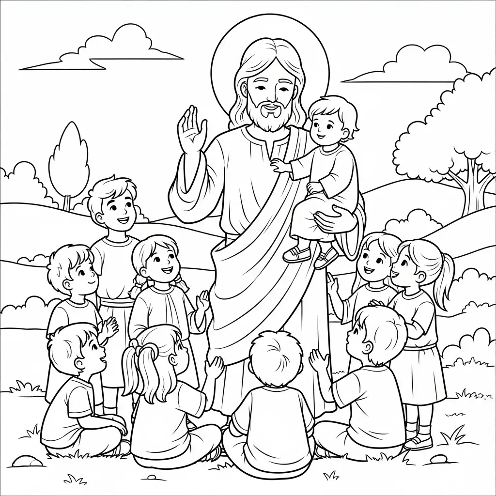 Desenho de Jesus ensinando crianças para colorir
