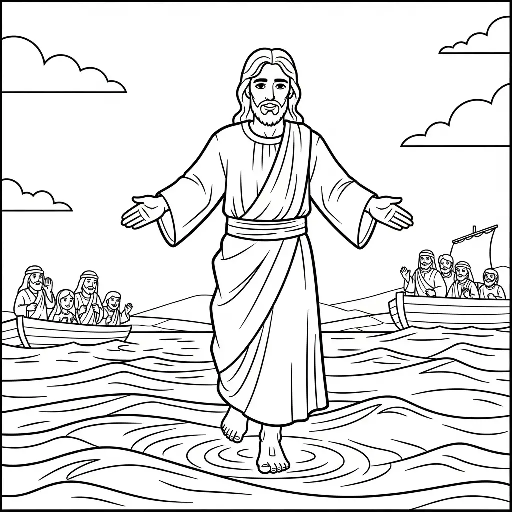 Desenho de Jesus caminhando sobre as águas para colorir