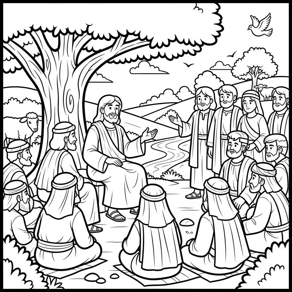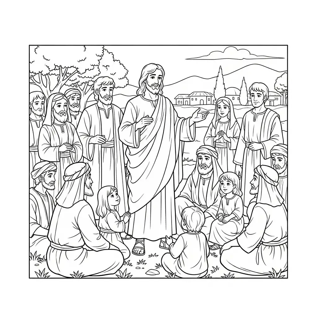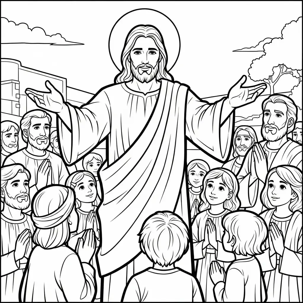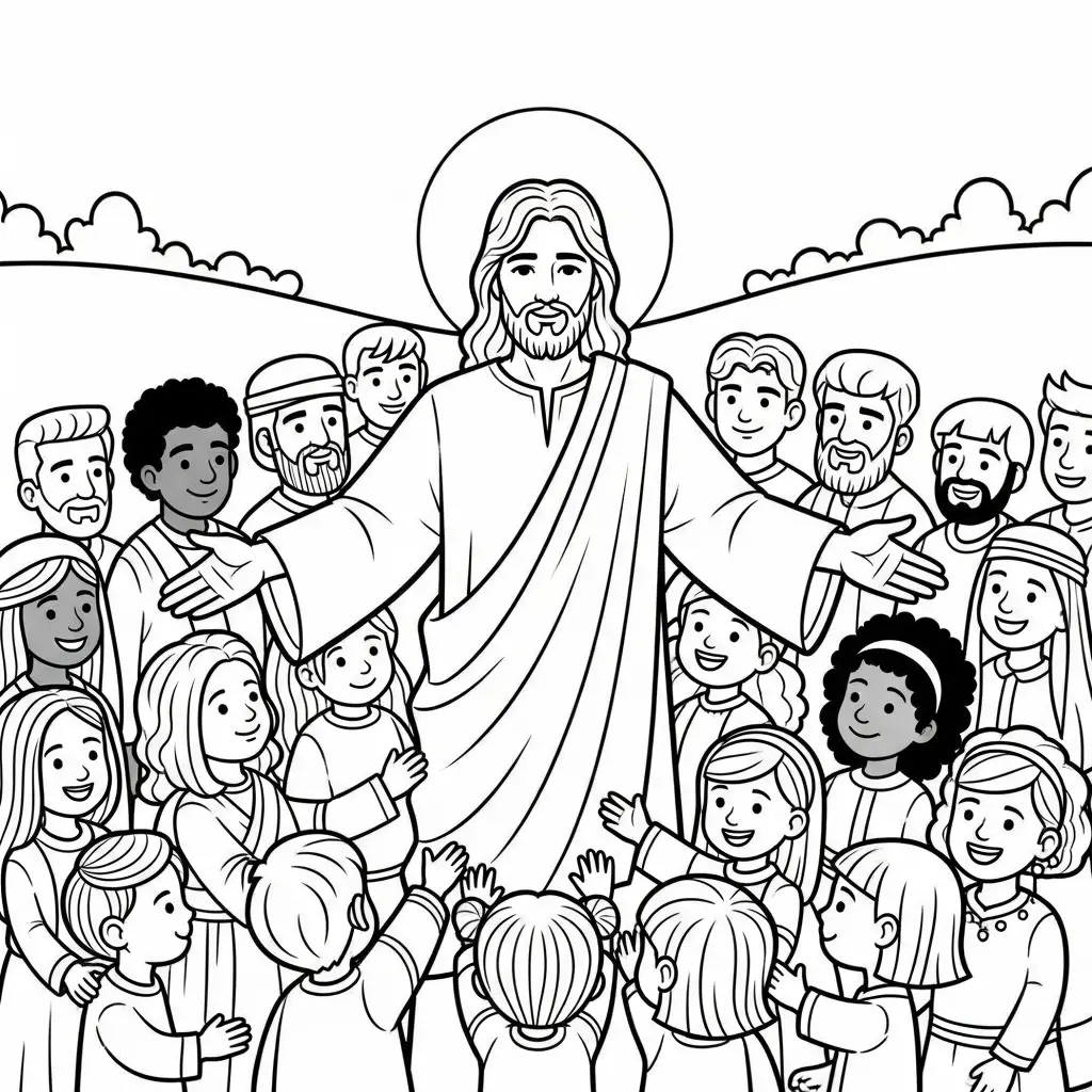 Desenho de Jesus contando parábolas para colorir