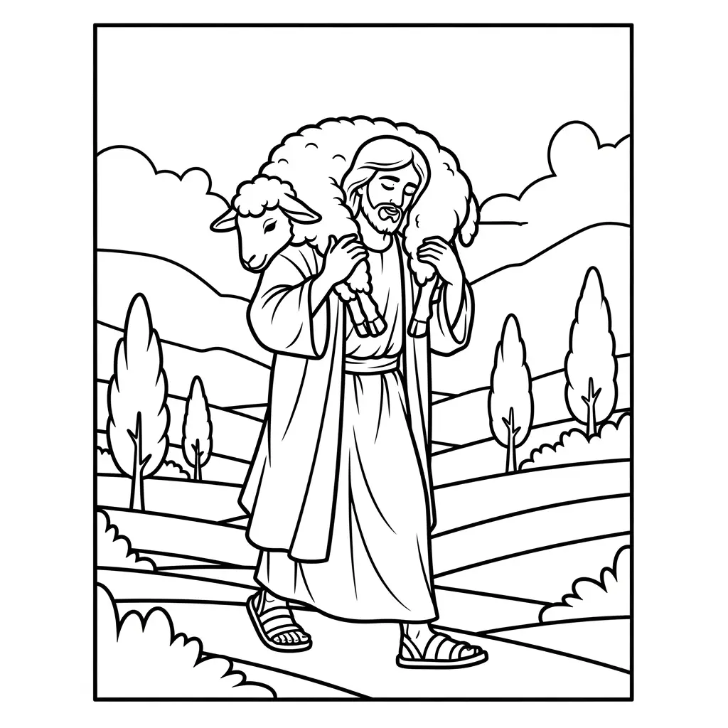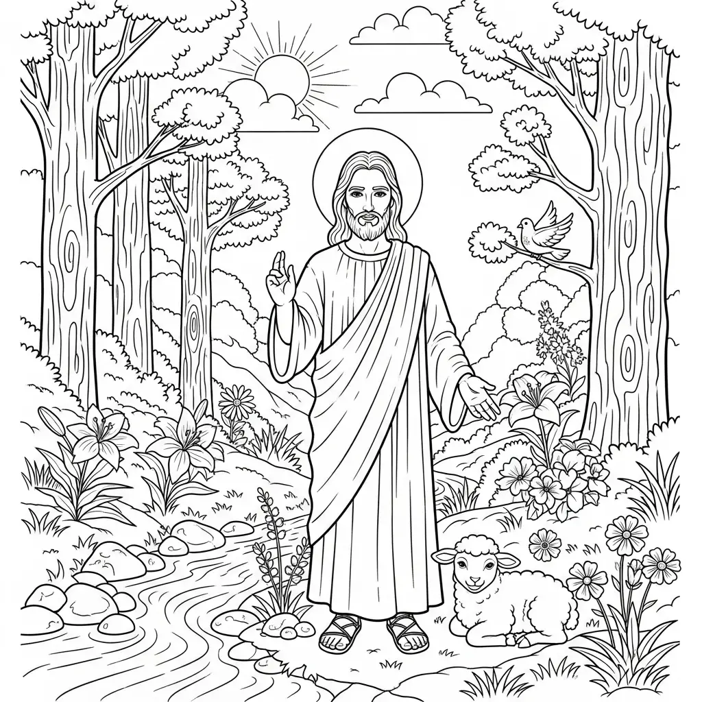 Desenho de Jesus em meio à natureza para colorir