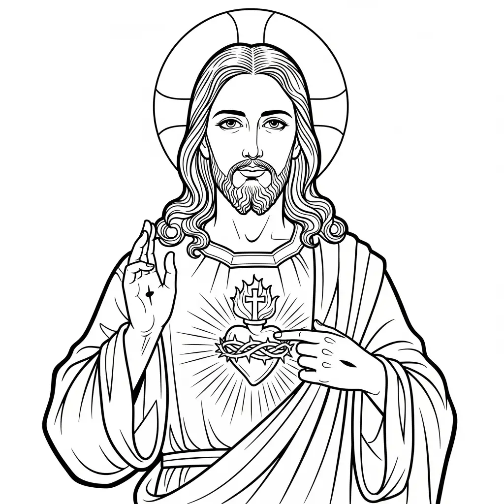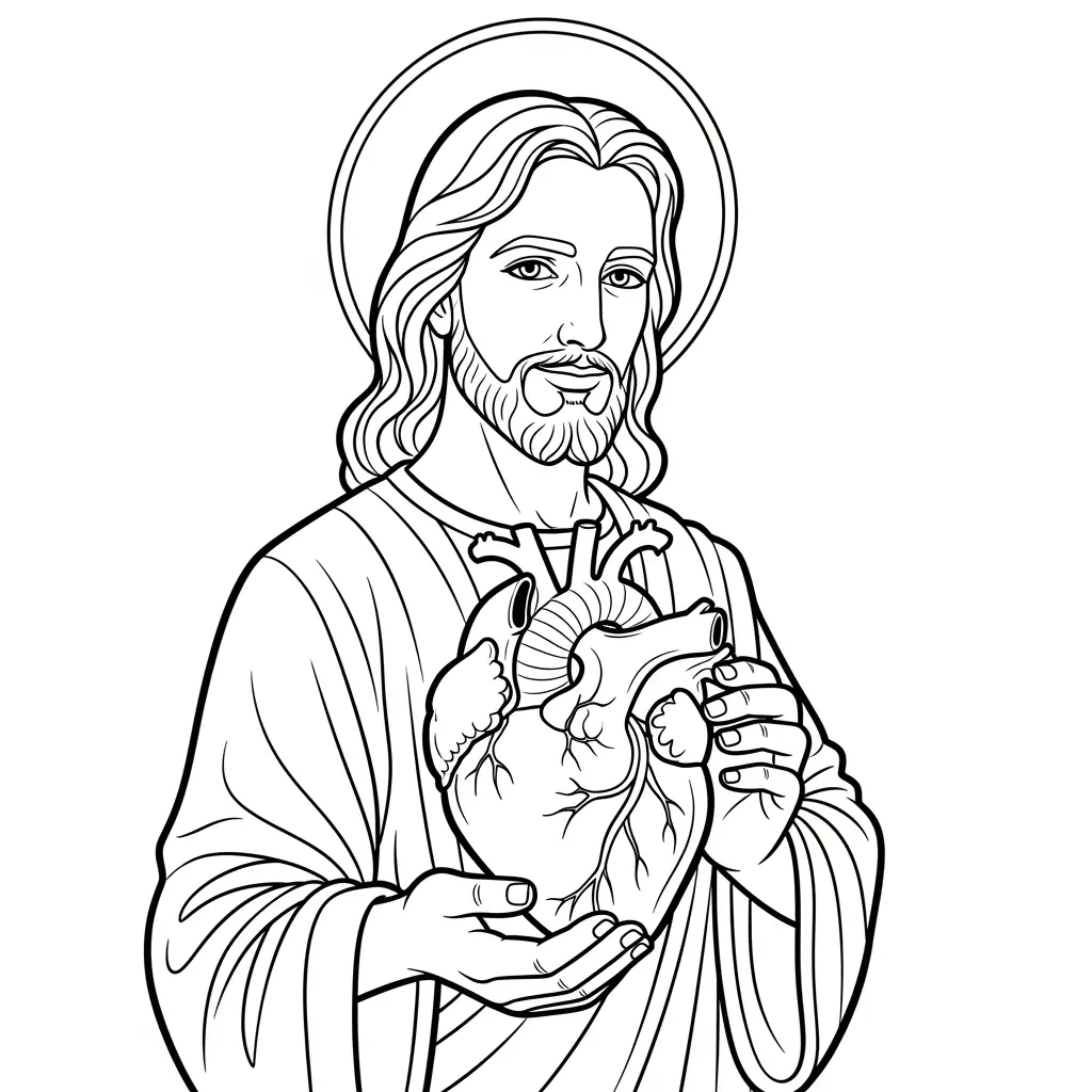 Desenho de Jesus coração puro para colorir
