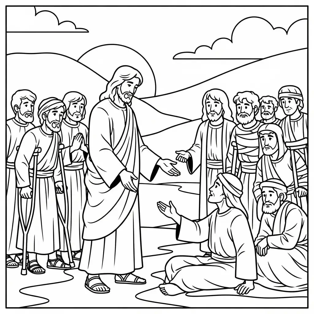 Desenho de Jesus curando doentes para colorir