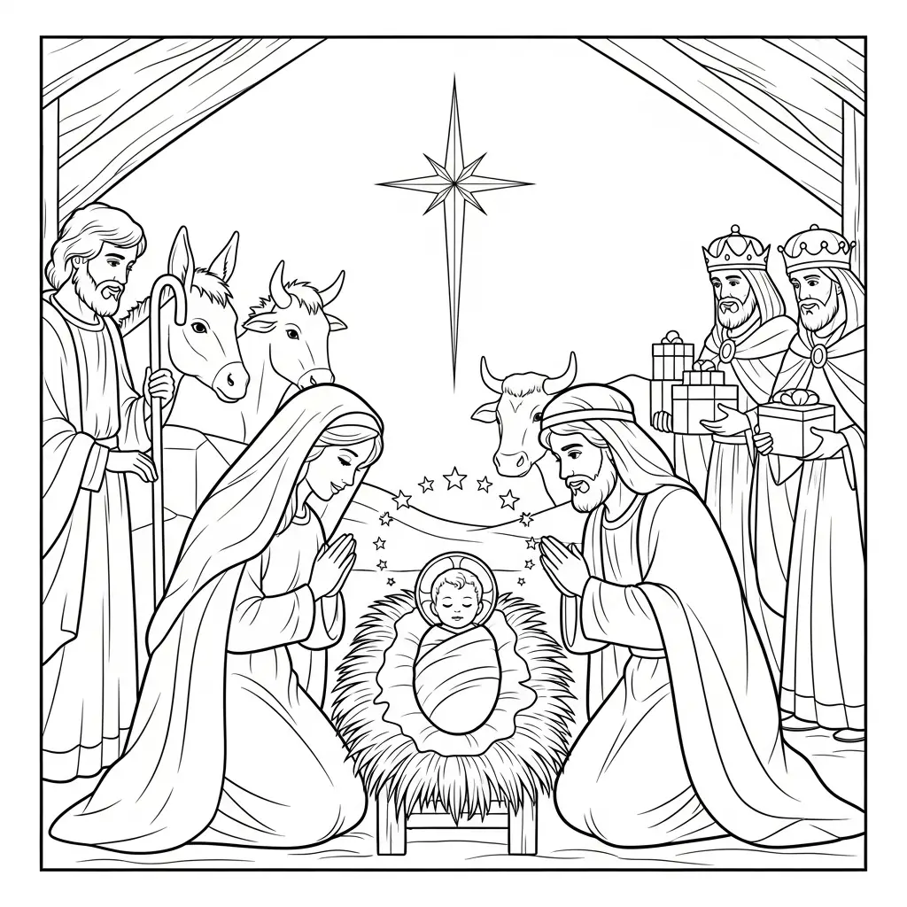 Desenho de Jesus e a Natividade para colorir