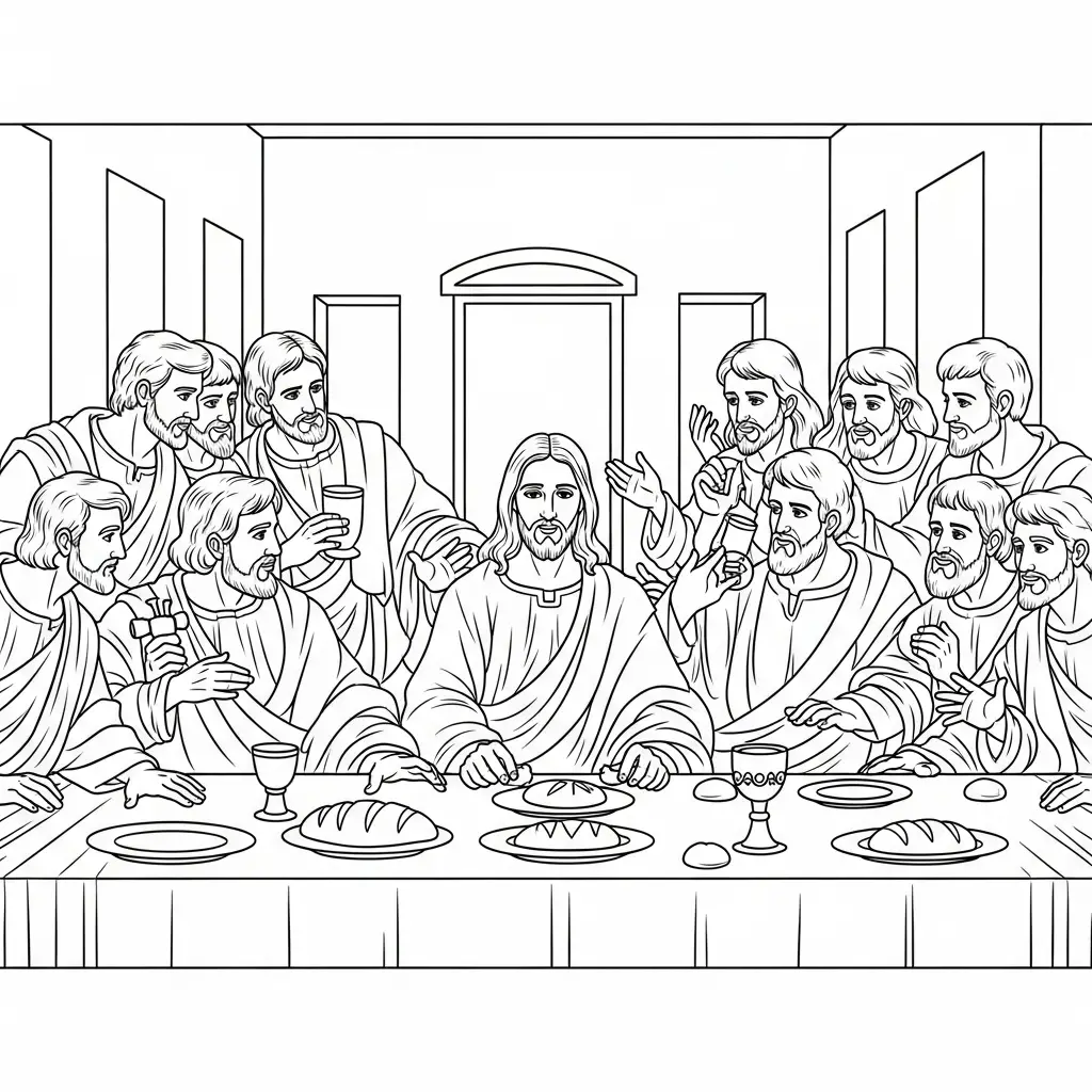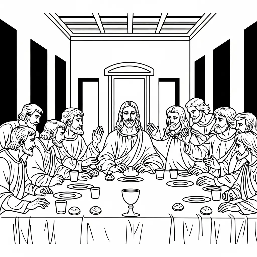 Desenho de Jesus e a Última Ceia para colorir
