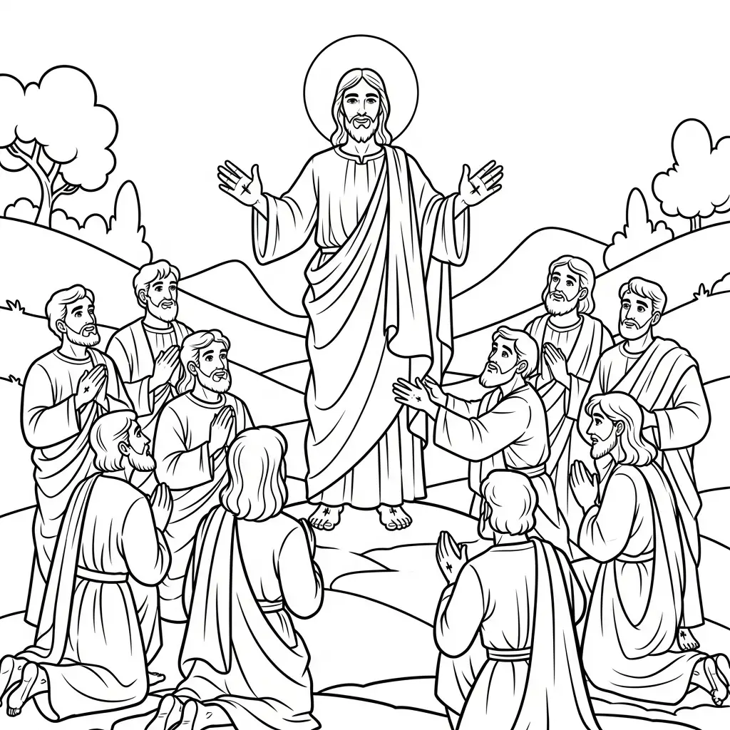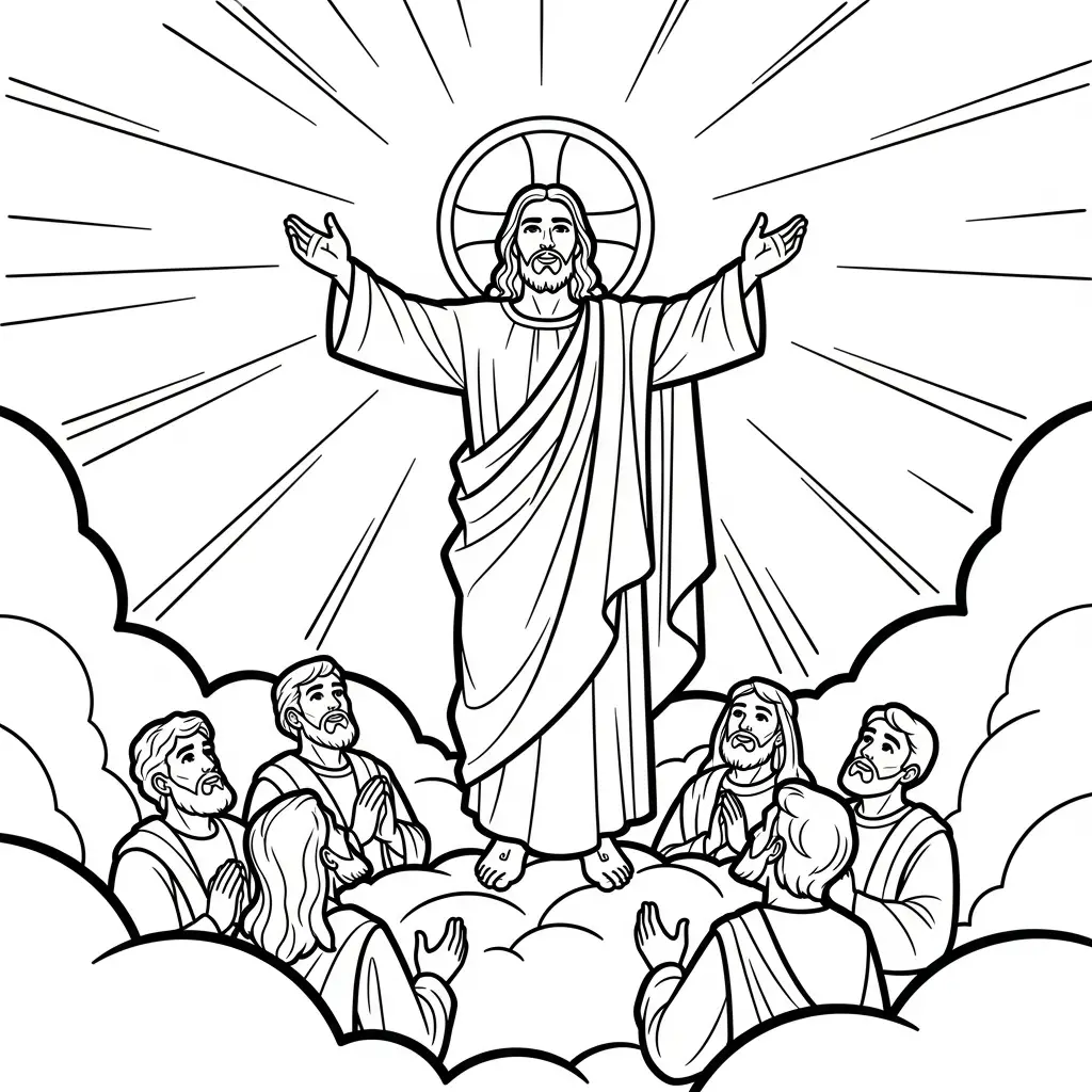 Desenho de Jesus e a subida ao céu para colorir