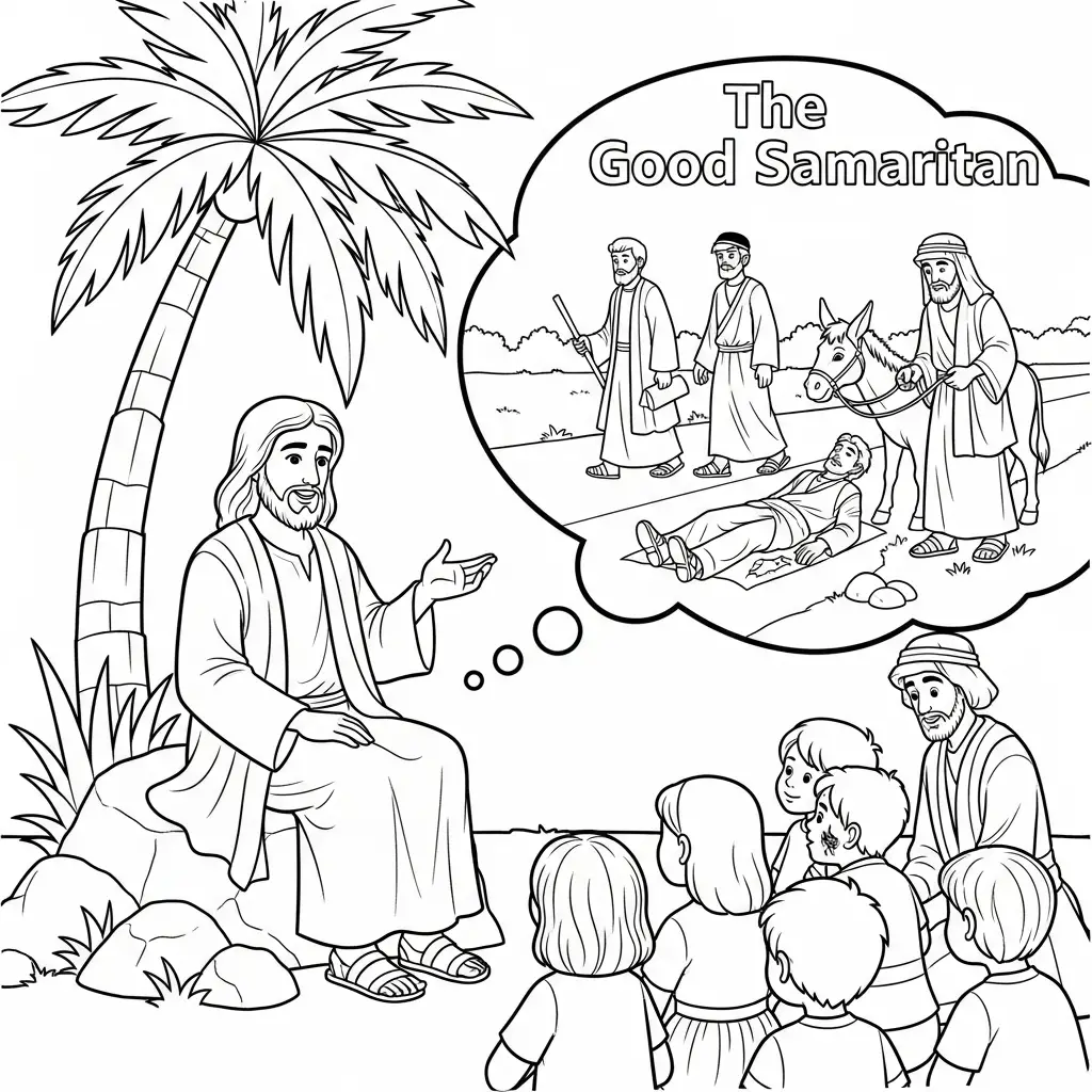 Desenho de Jesus e o bom samaritano para colorir