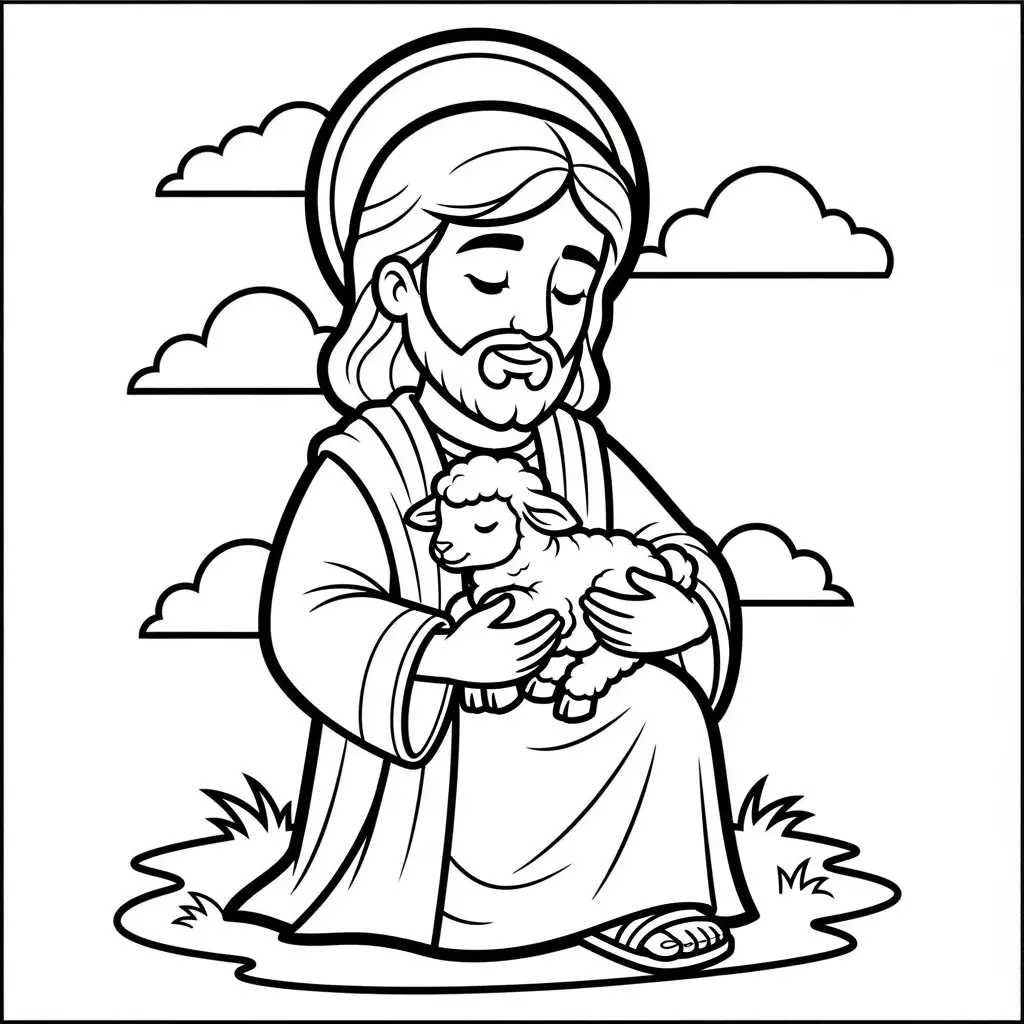 Desenho de Jesus e o cordeiro para colorir