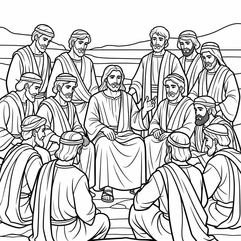 Desenho de Jesus e os discípulos para colorir