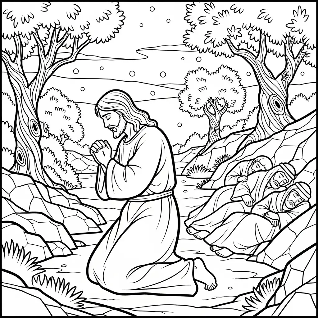 Desenho de Jesus em oração para colorir
