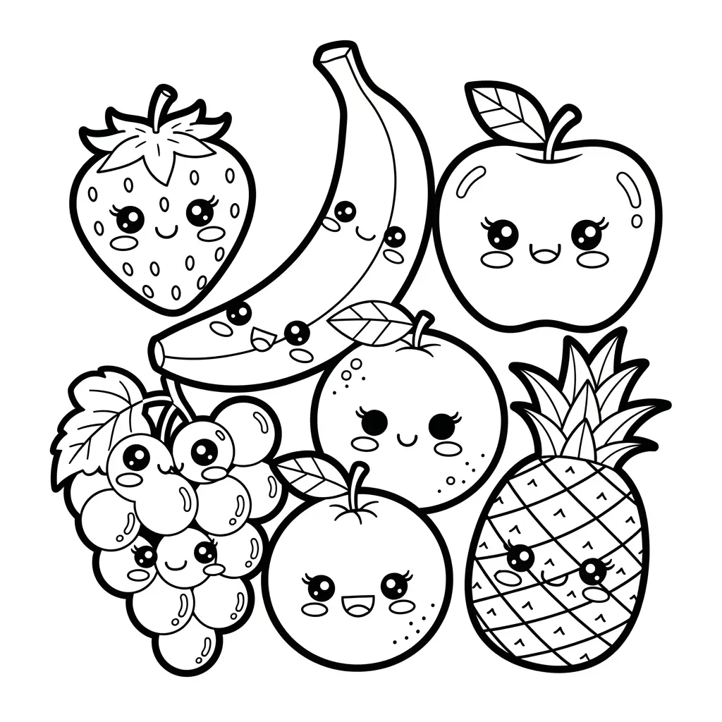 Desenhos Kawaii para colorir de frutas
