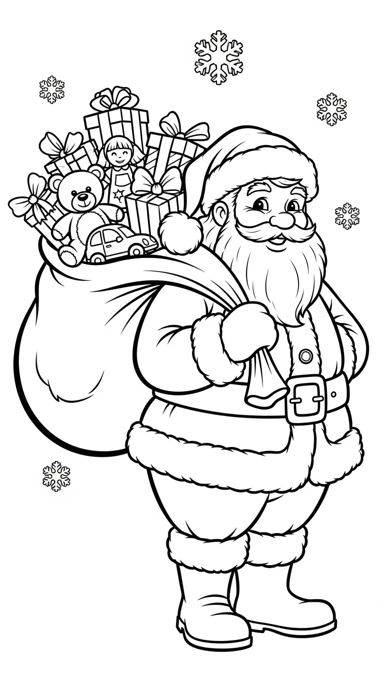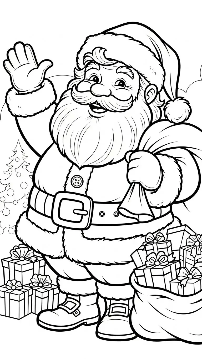 Desenho de Papai Noel segurando presentes para colorir