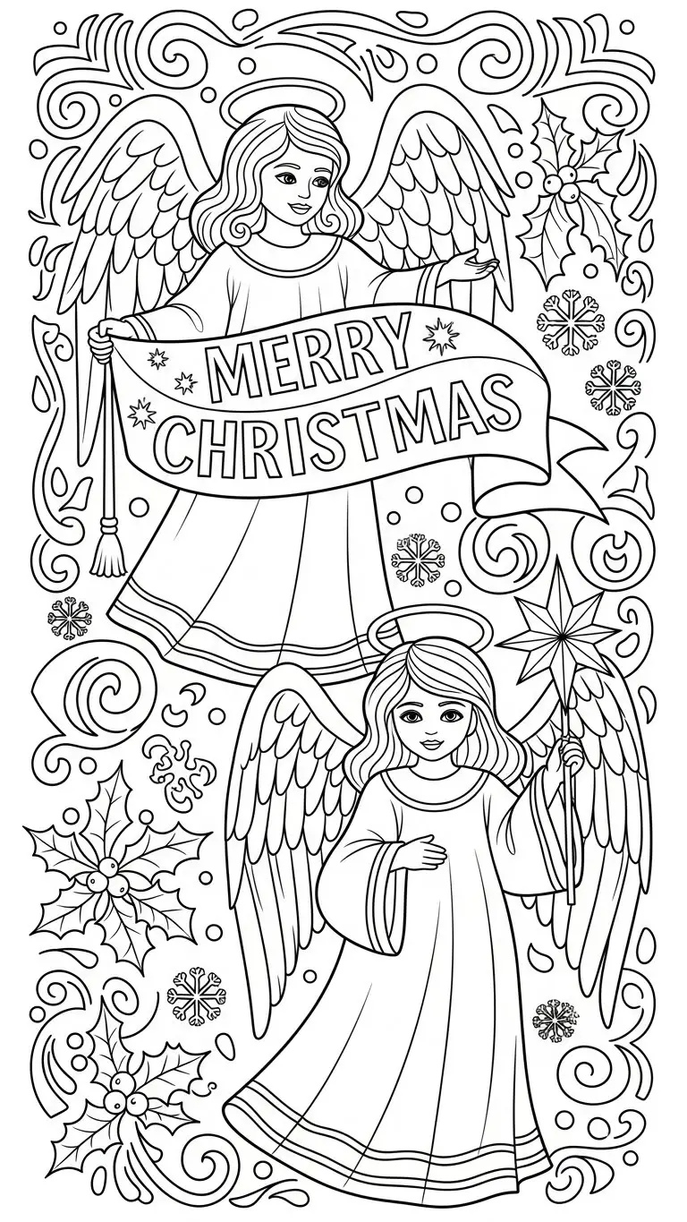 Desenho de anjos de Natal para colorir
