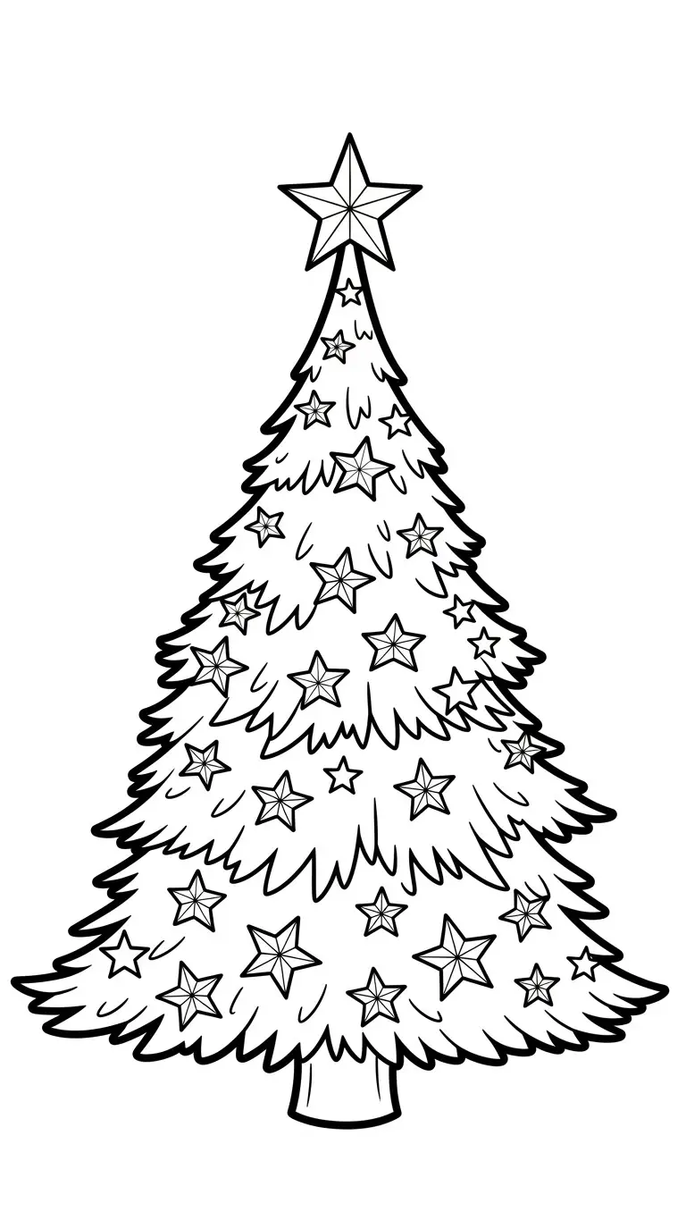 Desenho de árvore de Natal com estrelas para colorir
