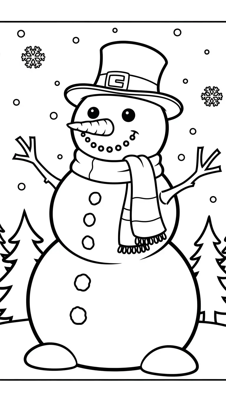 Desenho de boneco de neve com cachecol para colorir