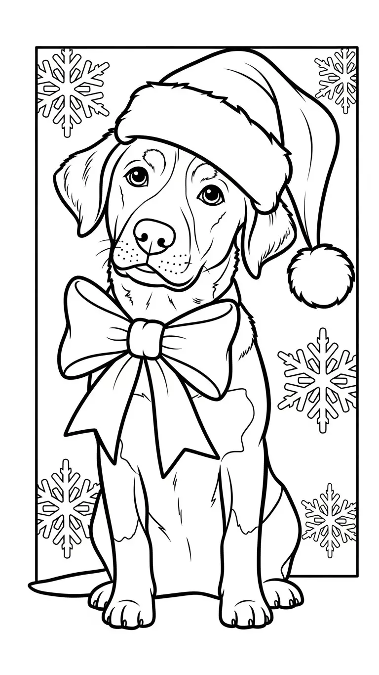 Desenho de cachorro de Natal com gorro para colorir