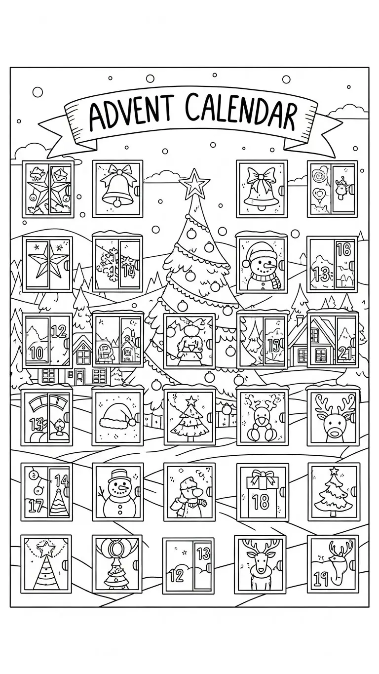 Desenho de calendário do Advento para colorir