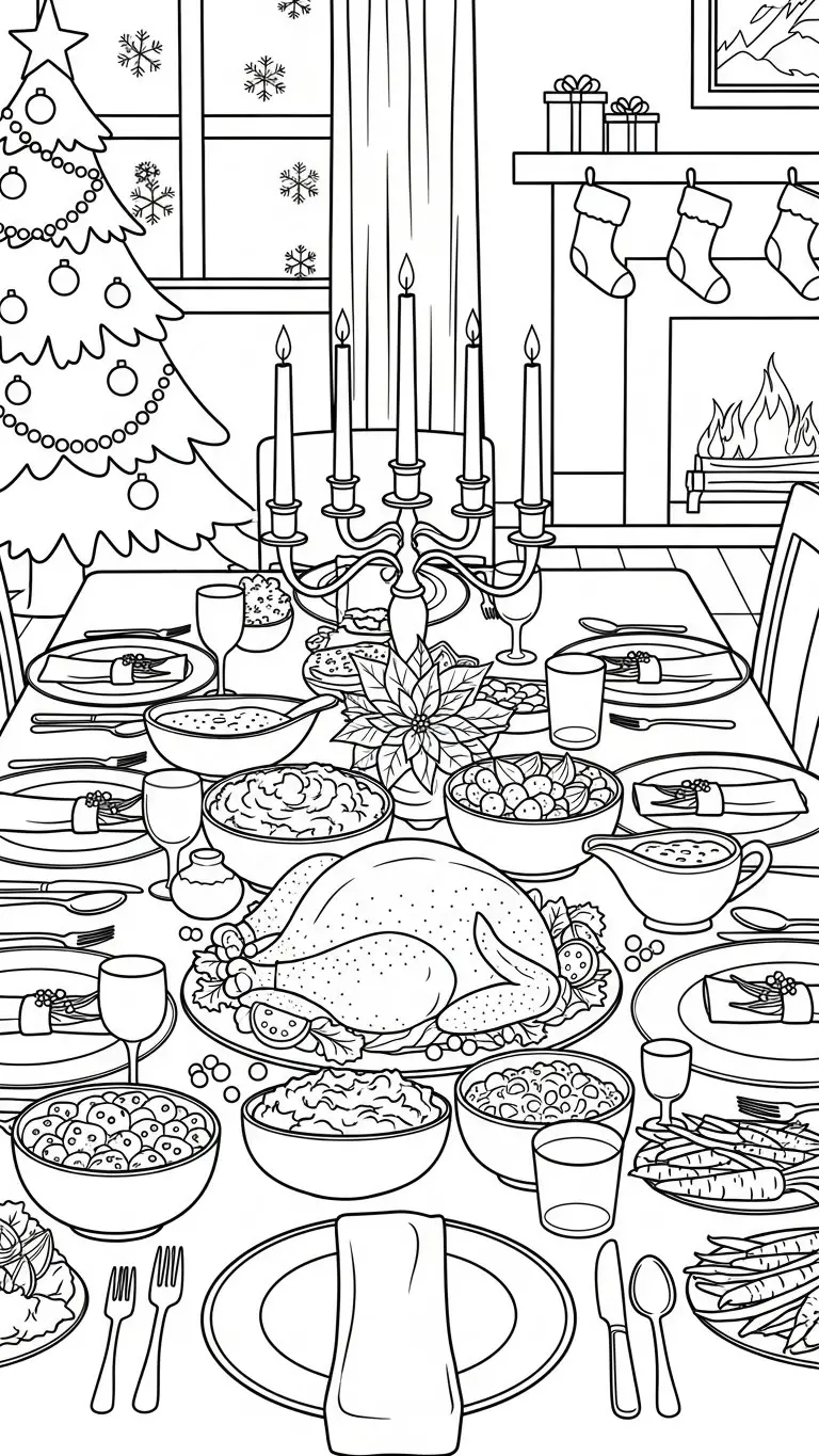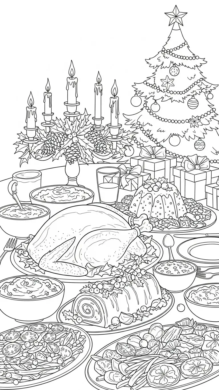 Desenho de uma ceia natalina para colorir