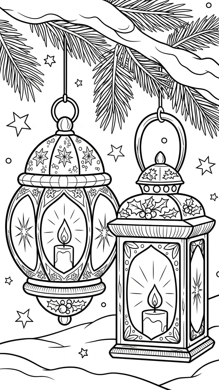 Desenho de lanternas de Natal iluminadas para colorir
