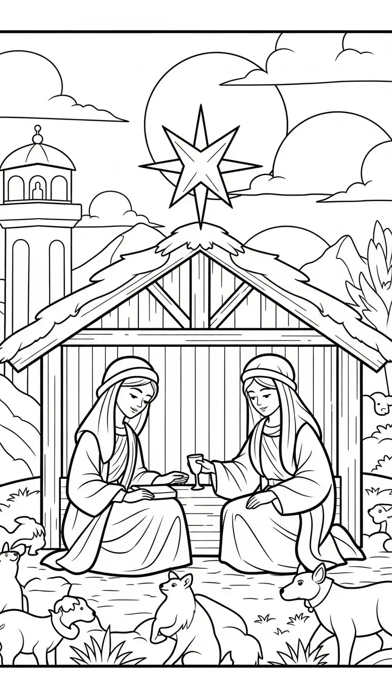 Desenho de nossa Senhora de Natal para colorir
