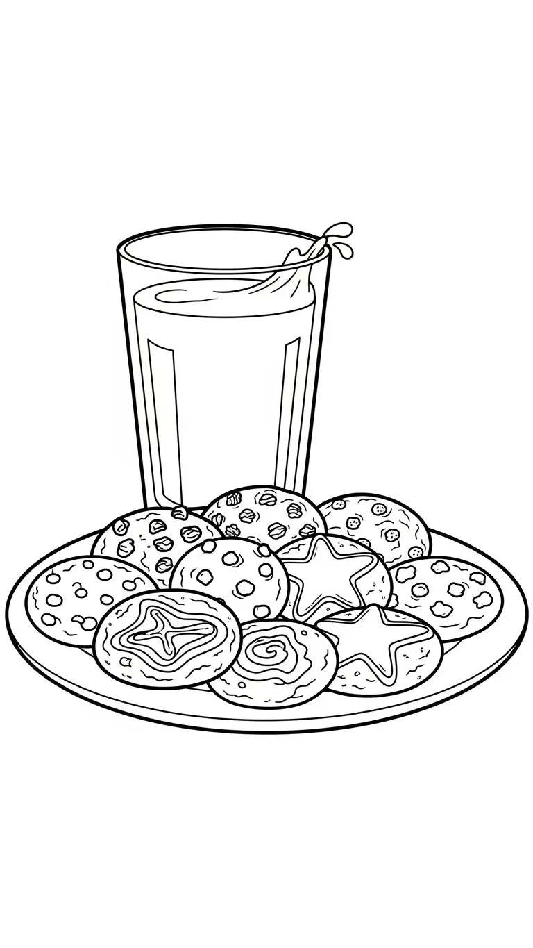 Desenho de prato de biscoitos e leite para colorir