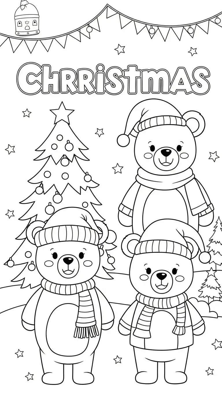 Desenho de simpáticos ursos de Natal para colorir