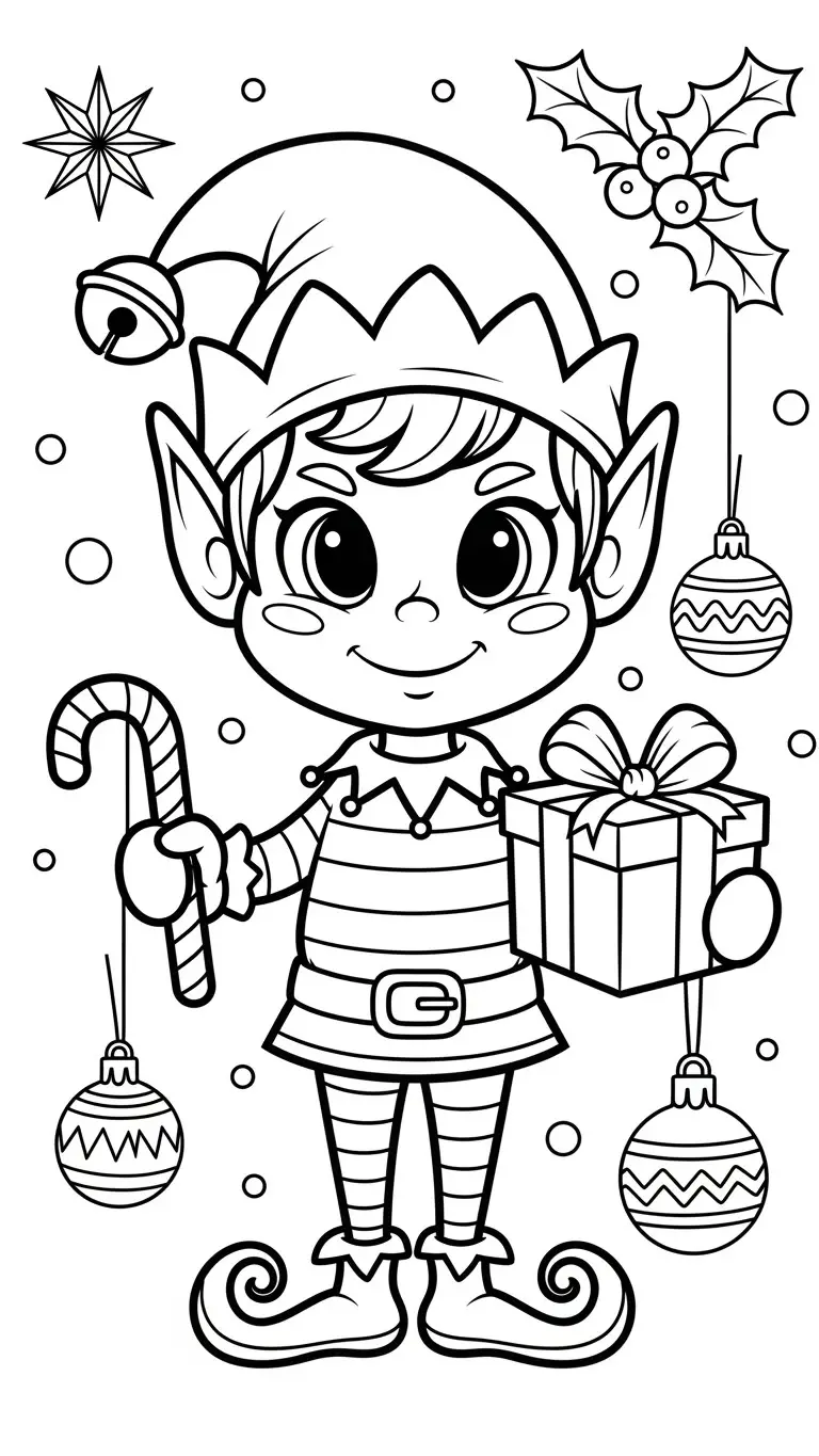 Desenho de um elfo de Natal doce para colorir