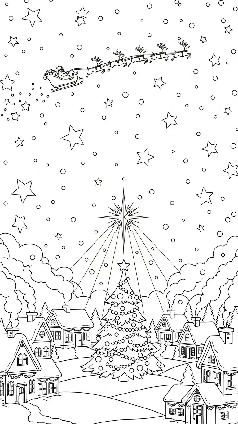 Desenho de uma noite de Natal com estrelas para colorir