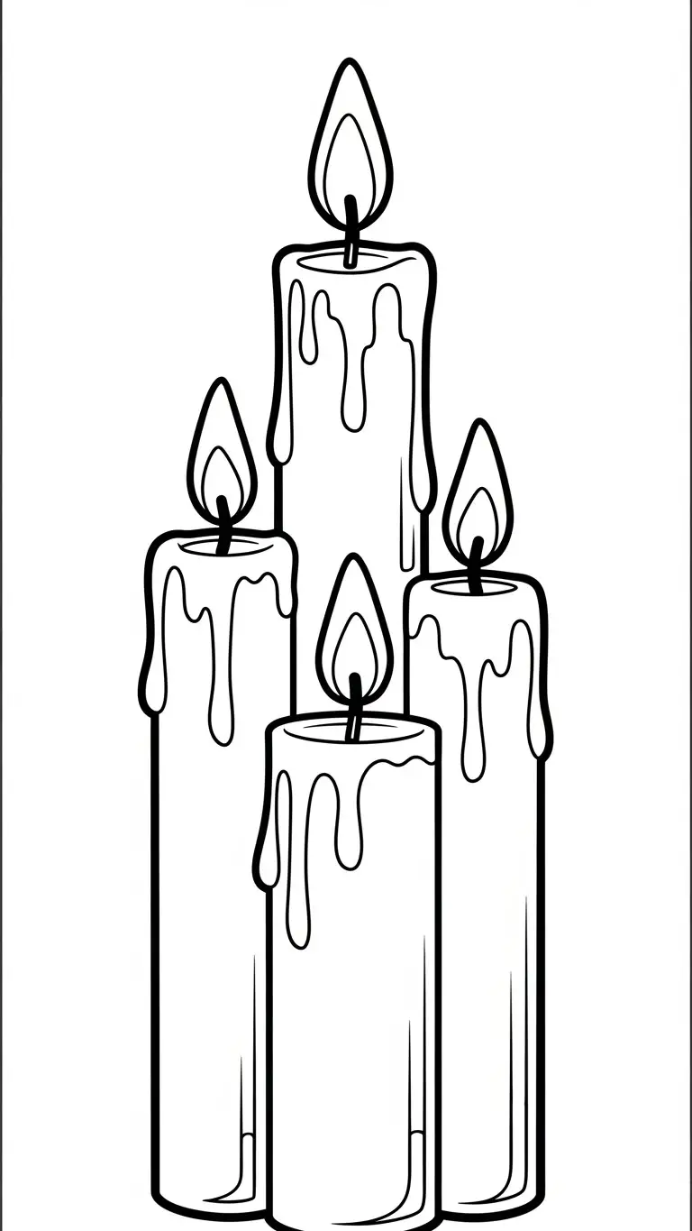 Desenho de velas de Natal acesas para colorir