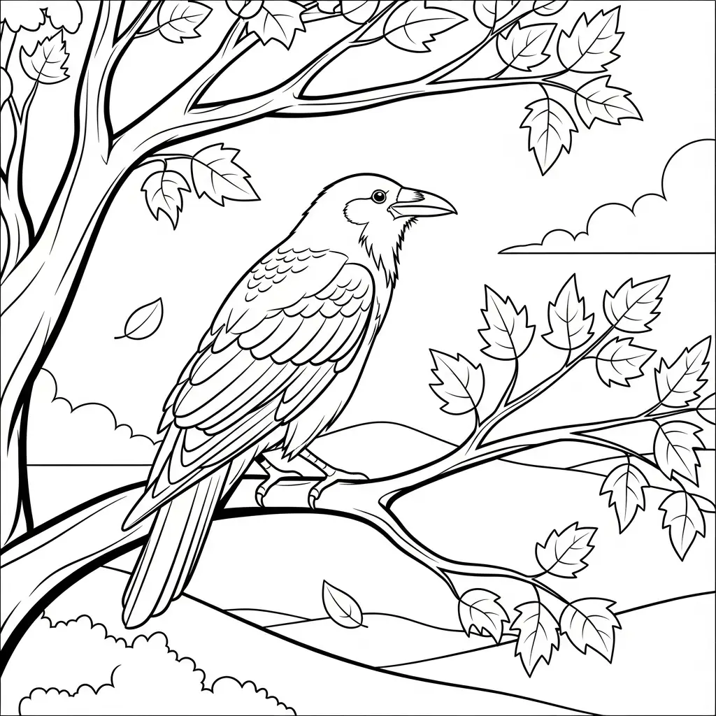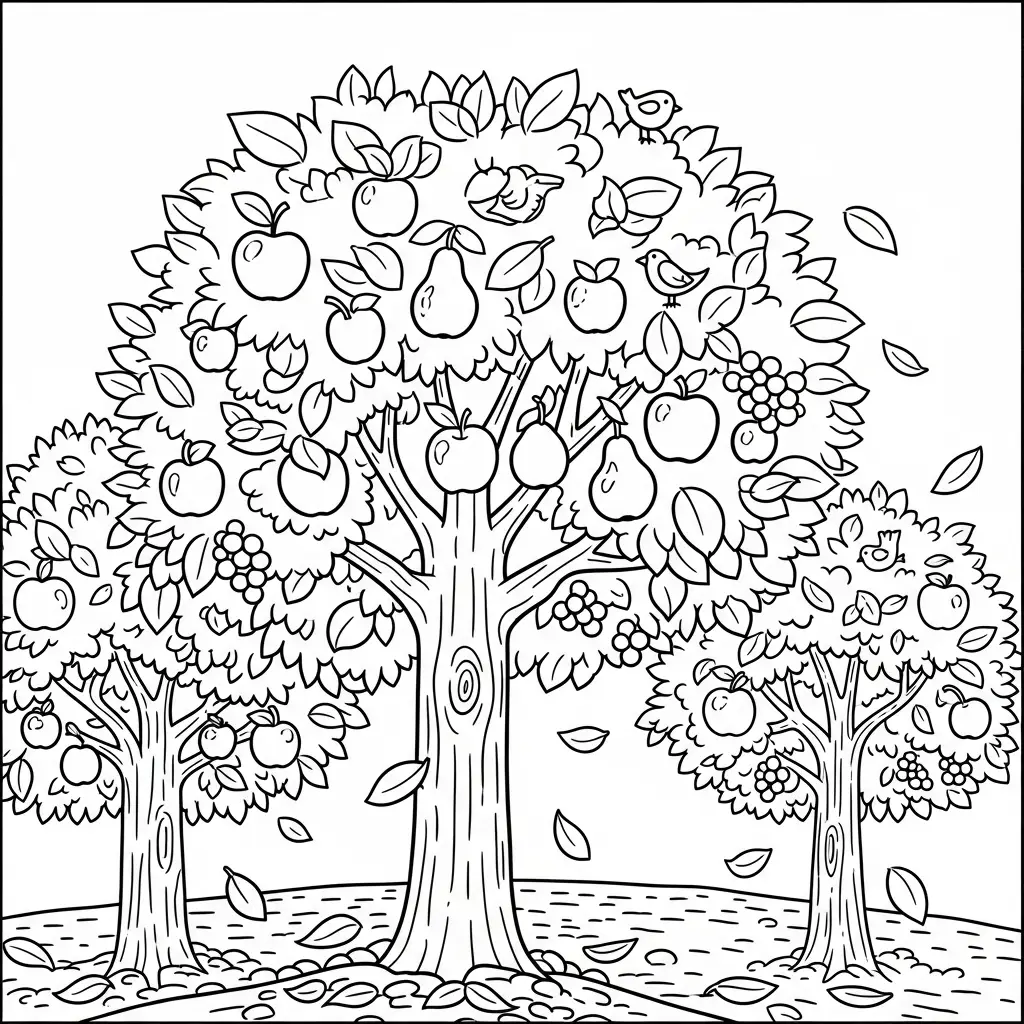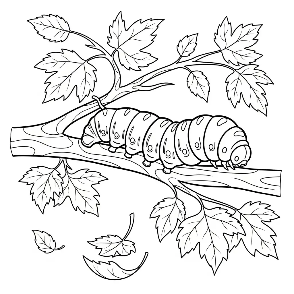 Desenho de Bicho da Seda em Árvore de Outono para colorir